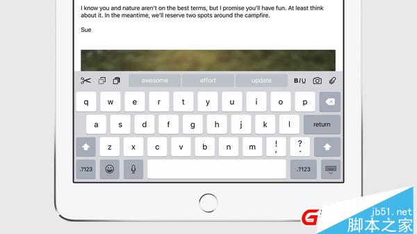 在输入体验方面,iOS 9的Quick Type键盘配备了各种新功能,让输入和编辑都更简单快捷。你可以方便的进行复制、剪切、粘贴等各种基本操作,同时也加入了全新的Shortcut Bar,用iPhone和iPad来写东西就变得更方便了。在搭配外置键盘使用iPad时,你也可以用快捷键来进行操作,例如在不同app之间进行切换。