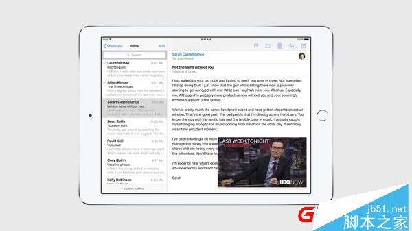 在多任务体验方面,iOS 9带来了全新的多任务处理功能和工具,让你能开开心心地一心多用。首先重新设计了app间的切换;新加入了Slide Over功能让你在不离开当前app的同时就能打开第二个app;而有了Split View功能,两个app能在同一屏幕上,同时开启、并行运作。还有Picture in Picture 功能可以缩小视频的尺寸,让你在回邮件的同时还能看视频节目。Picture in Picture、Slide Over 和 Split View 功能,都将对开发人员开放 API。