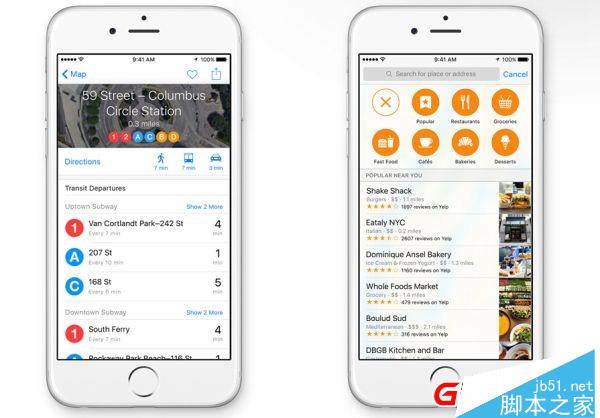 这是一个显著的提升,比如随时获取公交、火车、地铁、轮渡等公共交通工具的线路导航和实时位置等,还有利用 Transit 快速找到出站口和进站口,指导用户快速进出车站。这些功能在 iOS 8 上并不支持,而且在中国,Transit 方式将适用于超过 300 个城市!