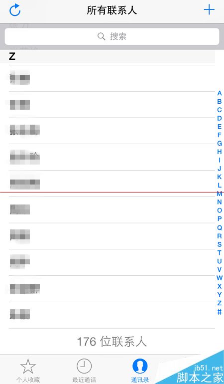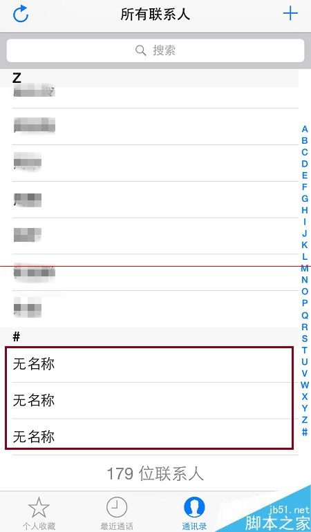 8、完成之后,返回到“通讯录”窗口,就可以看到,原来以“#”号标识的“无名称”联系人就都消失了。