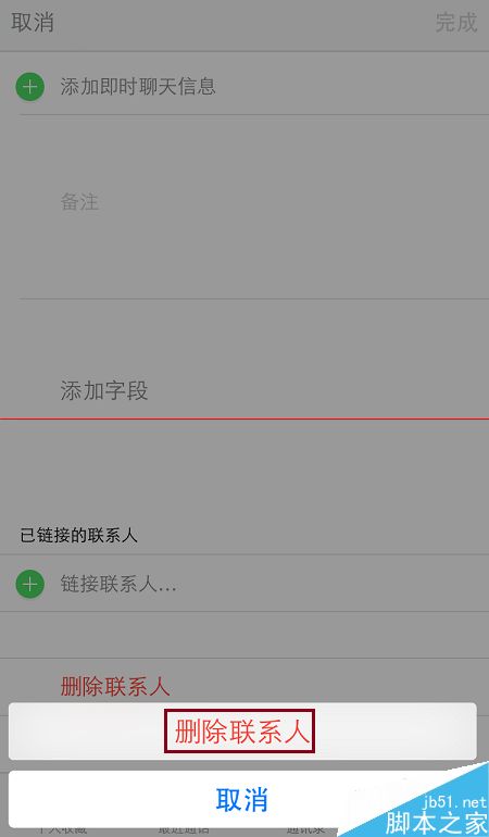 3、在“编辑”联系人窗口,向下滑动,直到编辑联系人的底部,我们就可以看到“删除联系人”选项了。