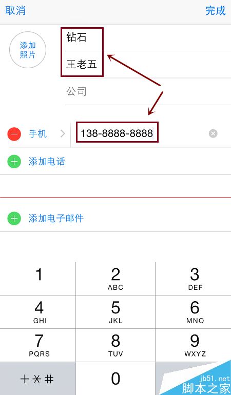 6、如在上文所说的“编辑”联系人窗口,可以输入一个联系人名称,电话号码等,就可以把为联系人改名了。