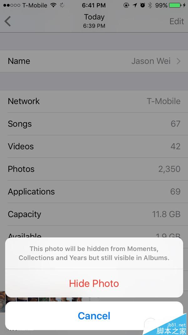 首先我注意到的一点是,iOS9系统字体整个变了,英文和中文都变了,具体是哪个字体我不认识,不过我很喜欢整体新的感觉,小清新的气氛越来越浓了。每个字符之间的距离似乎是变得稍微的宽了一些,总之看起来很舒爽。如下图所示,系统菜单的样式也变了,取消和菜单选项分开成了两个圆角矩形,个人觉得不如以前。
