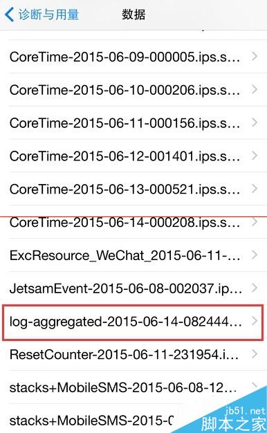 6、这时,系统将展示了诊断与用量的数据列表,在里面找到“log-aggregated-最新日期”的选项,然后打开它