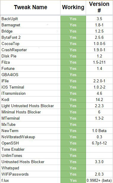 当然,还有部分插件不需要依赖Cydia Substrate也能正常运行,那么,到底有哪些插件可以完美兼容iOS8.3呢?外媒 r/jailbreak 就放出了完整的兼容插件列表,一起来看看。