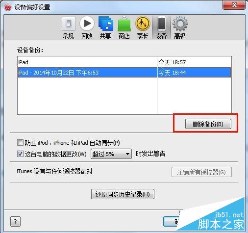 4、点击删除,即可删除备份。