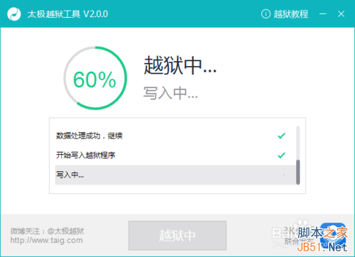 1、还有一种比较复杂的,就是在60%的时候,又卡住了。如下图所示,越狱工具会一直卡在这里,最后提示越狱失败。