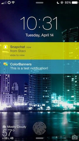 《ColorBanners》也是一款通知横幅美化插件,功能上与前面介绍的《DathBanners Pro》相似,可以根据软件的图标来改变通知横幅的背景颜色。此外这款插件可以指定背景颜色,而不是自动匹配。