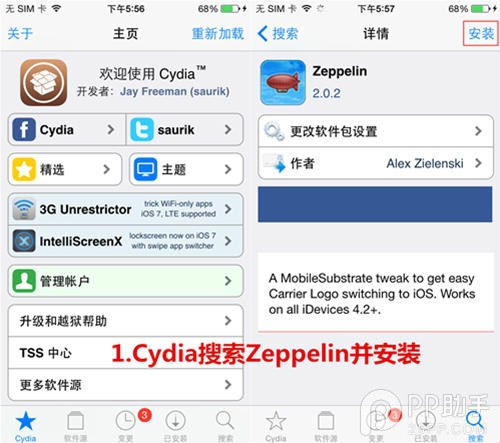 Zepplin只是众多越狱插件中的之一,想要实现对自己的iPhone美化的朋友可以通过 pp 越狱助手对自己的设备进行越狱。玩出个性,玩出不一样,赶紧来越狱吧,目前 pp 狱助手已集成相关越狱教程,即使是新手也能几分钟实现一键越狱。