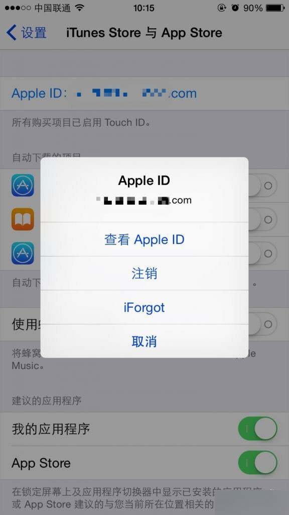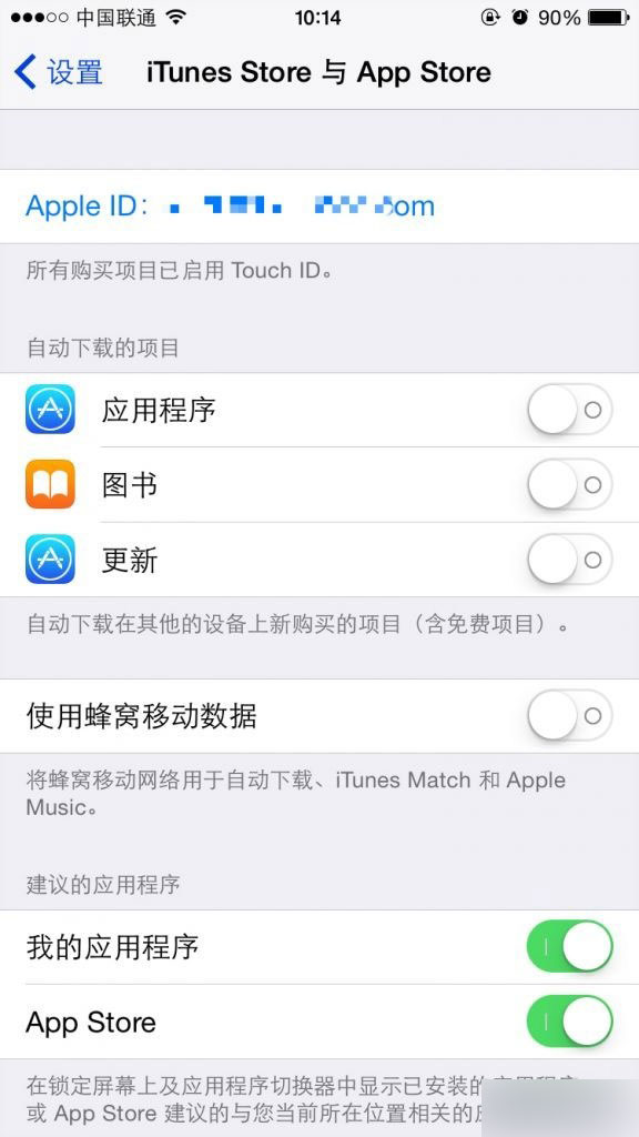 1.打开“设置”->“iTunes Store与App Store”,点击Apple ID;