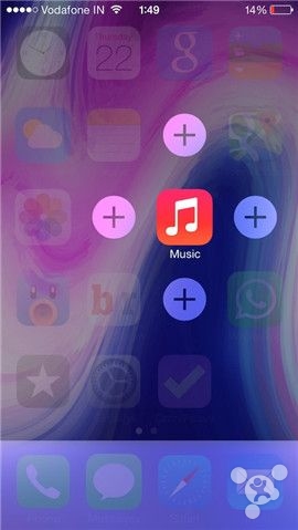 《Apex 2》是一款极具创意的App分类插件,由A3Tweaks团队制作,今天已经更新支持iOS 8.0,插件以任意的App图标为中心点,通过这个中心点左右拉动呼出上下左右四个位置,每个位置都可以添加图标,这样一来一个App就纳入了四个额外的App。