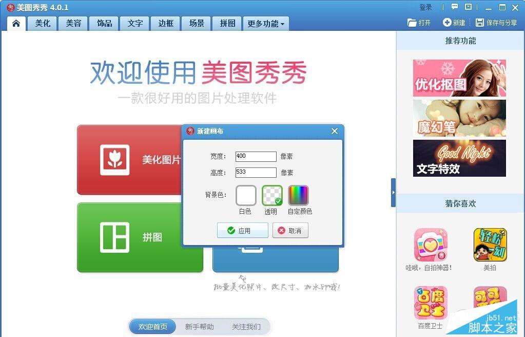 1、打开美图秀秀或PS, 新建一个透明背景图层 尺寸是: 400*533 像素