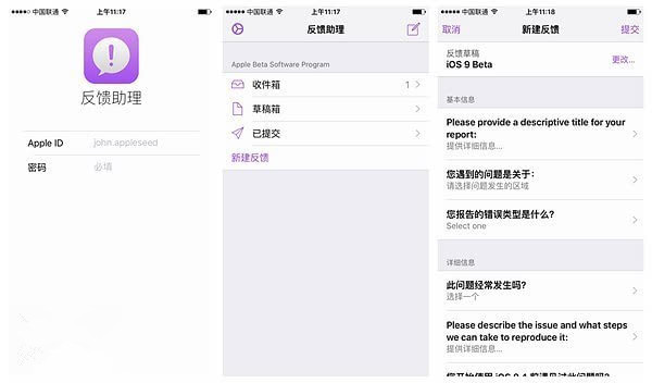何谓iOS9公众测试版?只要 拥有Apple ID并在注册过程中接受Apple Beta版软件计划协议,都可以下载体验iOS9公众测试版,并通过内置的反馈助理App,向苹果反馈相关意见和建议,从而帮助改进iOS9。除iOS9之外,苹果也针对OS X El Capitan发起了公测活动。