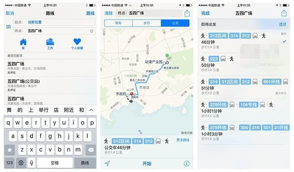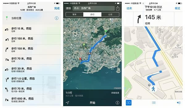 ▼苹果地图全新的 Transit功能,也就是加入了公交、地铁以及步行方式的路线规划以及导航功能,同时支持附近搜索,该功能将支持国内300多个城市。在易用性方面做得非常不错,例如在步行导航中,3D立体视图、语音导航、行程时间预估等一应俱全,唯一的遗憾就是缺少了离线功能。