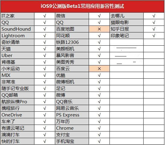 兼容性:笔者对44款常见应用进行了测试,其中只有百度旗下的百度地图、百度云两个App出现了闪退情况,兼容性还算不错。注意,笔者这里是将iPhone6全新升级到iOS9之后,重新对应用进行的安装, 出现闪退问题的朋友不妨先尝试下卸载并重新安装最新版本应用。