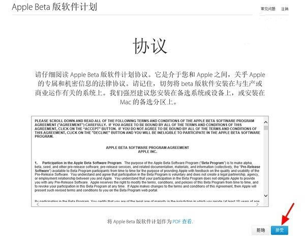 ▼登录之后,我们就可以看到相关协议,点击右下方蓝色的“接受”即可完成注册。