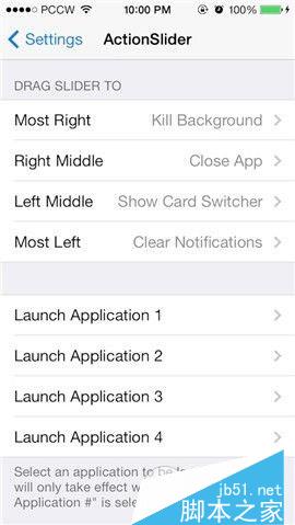 《ActionSlider for Notficiation Center》可以让用户利用Activator手势在通知中心关闭当前运行的程序、一次性关闭后台程序、开启多任务栏、激活Siri、截图等操作,最多设置4个动作。