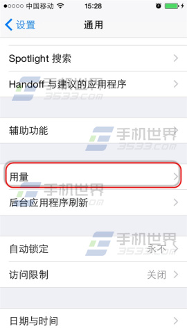 第1步:依次进入“设置-通用”界面,点击“用量”选项进入。