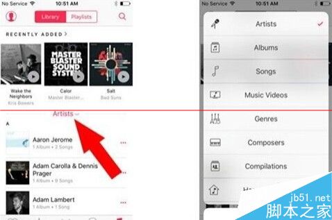 三、打开iOS设备上的“音乐”应用,选择“我的音乐”,点击“艺术家”栏目就可以看到“家庭共享”功能了。