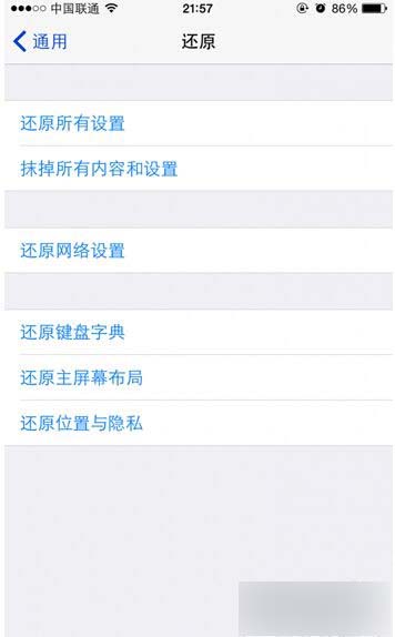 3.点击“还原位置与隐私”,输入设备的密码,然后确认你要还原iOS设备上所有的位置与隐私设置