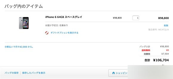 ▼ 苹果日本官网的价格并不包含消费税,所以只有在下单之后才会看到总价(这消费税还真是不少)。