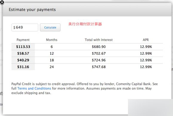 ▼ 苹果美国官网支持用Visa、MarsterCard、美国运通和Discover的信用卡以及PayPal支付。