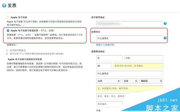 (3)选择适合自己的支付方式之后点击“继续”进入发票信息页面,苹果官方在线商店提供标准发票、个人/公司的增值税普通发票等发票提供,视需求选择并填写抬头即可。