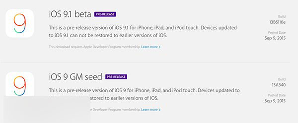 苹果iOS9.1 Beta1官方固件下载大全(百度网盘补全中)