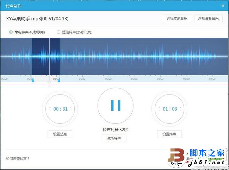 3、可自定义设置起点和终点,也可以试听制作的铃声