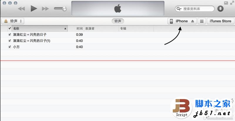 4、铃声文件拖完以后,接着再点击 iPhone 图标