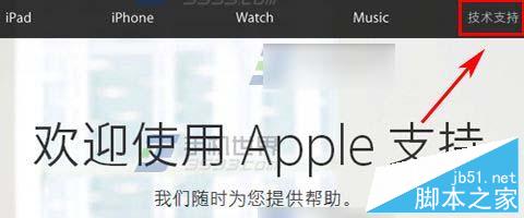 1、在苹果官网首页,点击上方一栏的【技术支持】;
