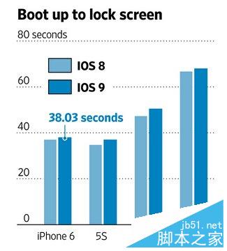 在所有手机上启动大多数应用要么速度没有变化,要么速度只是慢了一点点。例如,安装iOS 9后,在iPhone 5s上启动Safari多用时四分之一秒。福勒记录到速度变化最大的测试项目出现在iPhone 5上,与安装iOS 8相比,安装iOS 9后其冷启动过程多用时3秒钟。