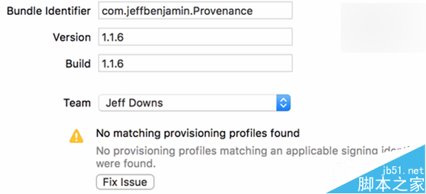 11、点击Play运行按钮,这时候你会看到一个“错误的代码签名”的错误提示,点击“Fix Issue”修复问题以及使用你的开发者账户进行登录。这里的账户(Apple ID)不需要付费开发者账户,如果没有的话,直接在其中创建一个就好;