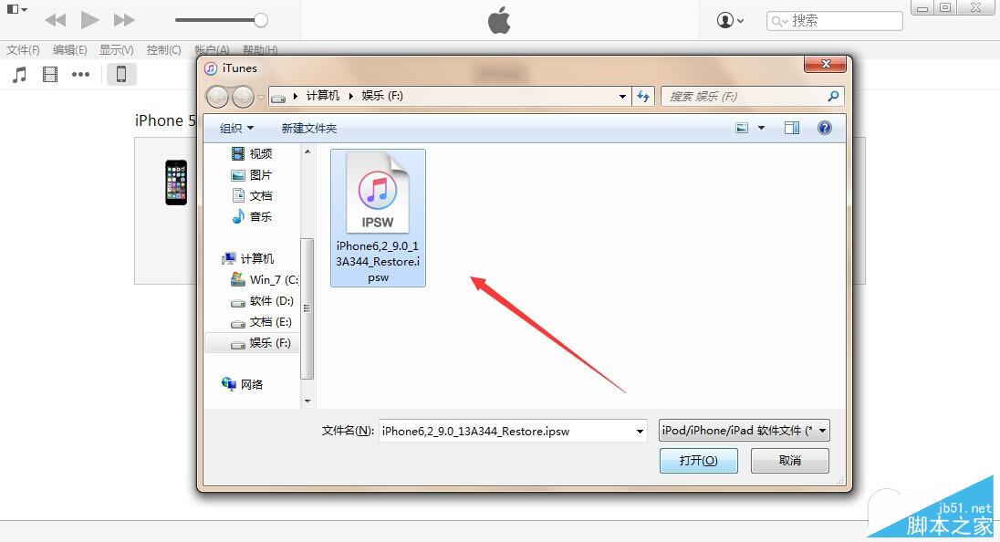 4.iTunes会弹出对话窗--请选择已经下载好的固件--点击更新--等待iTunes运行。