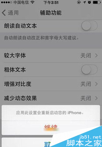 3、手机自动重启 打开选项之后,系统会弹出一个关于重启设备的咨询窗口,点击“继续”即可