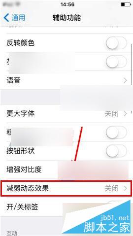 2)接着点选【减弱动态效果】进入,开启【减弱动态效果】右边滑块即可。(如下图)