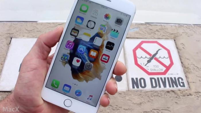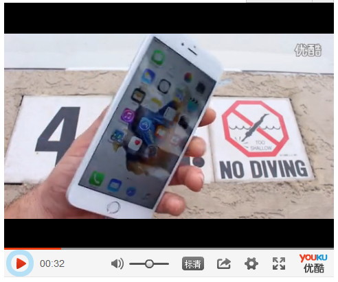 下面这段视频中,iPhone 6s Plus 被放入游泳池中,深度为4英尺。1分钟后,手机的屏幕出现了一些触控问题,2分钟后,设备的屏幕某部分开始无法正常显示。几分钟后,iPhone 6s Plus 变得越来越热。两个小时后,设备直接报废,无法开机。总得来说,iPhone 6s 和 iPhone 6s Plus 耐水性要比去年的 iPhone 更好,只是无法做到真正的防水。