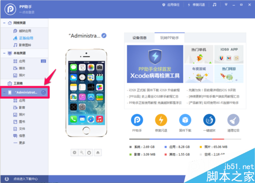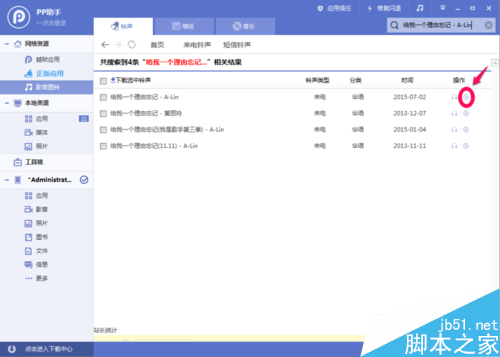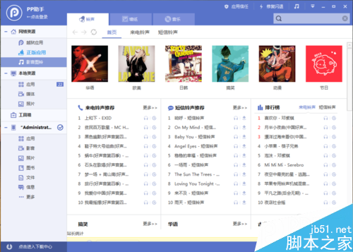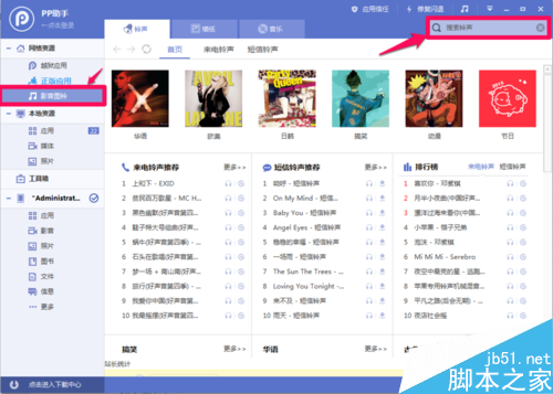 第四步,在PP助手的左侧栏,点击“影音图铃”。然后就可以搜索自己喜欢的铃声了。