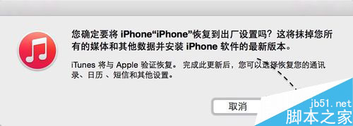 第八步:接下来便可以开始为 iPhone 重新恢复系统,也叫做刷机。当然这个操作会删除 iPhone 上的所有数据,所以操作请谨慎。如果确认要继续操作的话,请点击【恢复 iPhone】按钮。