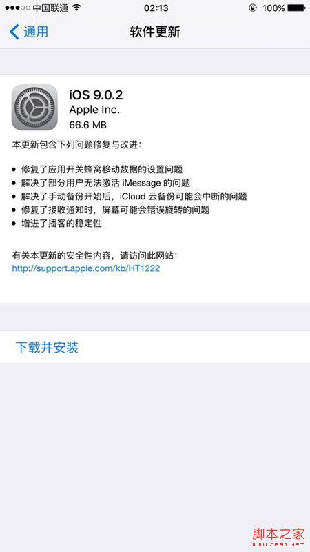 本次iOS 9.0.2更新主要是修复了蜂窝数据、iMessage、iCloud 备份、屏幕旋转以及播客的Bug。