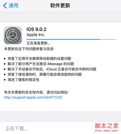 这时,iOS 9.0.2系统将自动进入下载更新升级状态,直到iPhone手机自动重启
