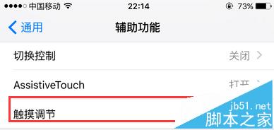 8、返回到原来的辅助功能页面,这时【触摸调节】是处于开启状态