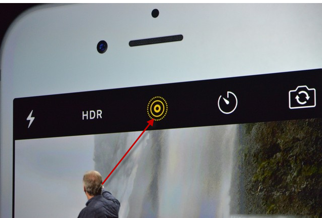 其实,iPhone 6s关闭Live Photos非常简单,只要打开相机,然后点击HDR右侧中间位置的Live Photos功能按钮就可以开启或关闭Live Photos,如上图所示。