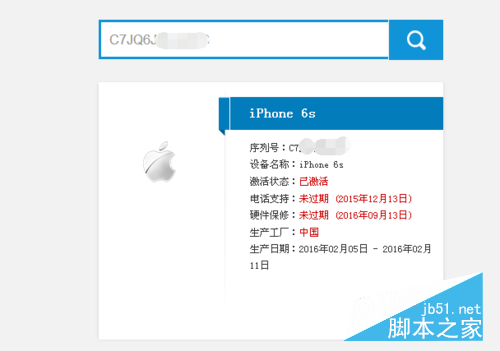 2.搜索一些苹果第三方查询网站也可以进行查询苹果6s的激活日期,第三方查询同样在查询的时候将在保修到期时间减掉1年时间就是iphone6s的激活时间。