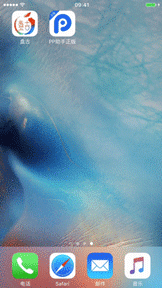 6. PP越狱工具进行至“请解锁设备,点击桌面上的<盘古>图标 ”时,请打开苹果设备,点击屏幕的“盘古”图标;