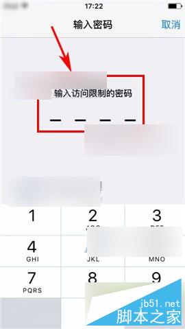 2)接着输入【访问限制密码】,即是你的锁屏密码,进入后将【相机】右边滑块打开即可。(如下图)