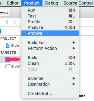 8、点击Product —>Archive
