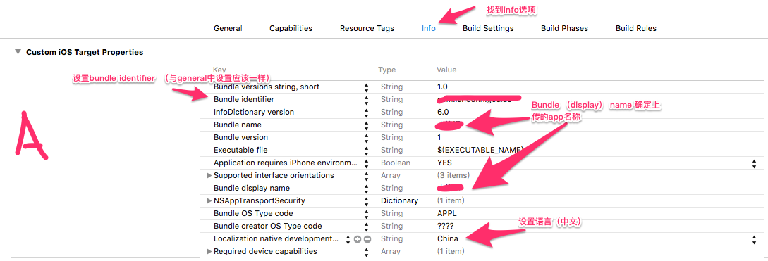 4、设置info: