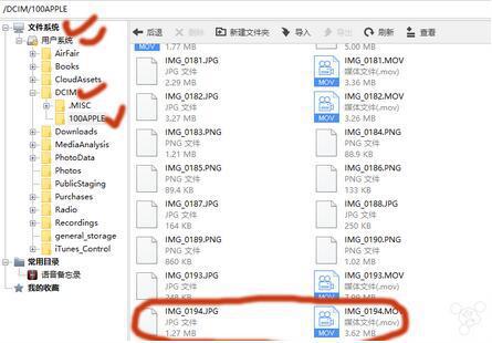 然后依次进入目录【文件系统】-【用户系统】-【DCIM】-【100APPLE】(有些人不是100APPLE,可能是101,102,总之打开数值最大的一个。)