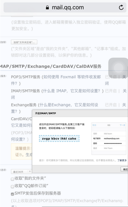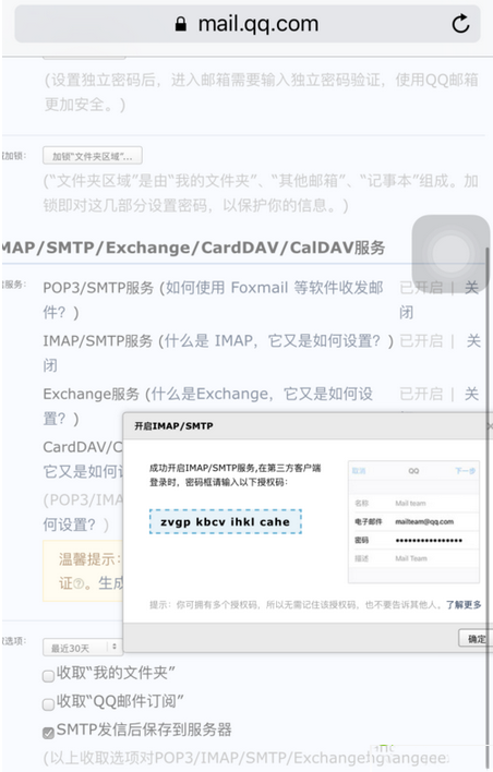 开启【IMAP/SMTP服务】选项后,回到iPhone继续设置qq邮箱(注意:如果你使用了SSL,这时候的密码不用填邮箱密码而是授权码),有没发现,这个时候就可以了呢